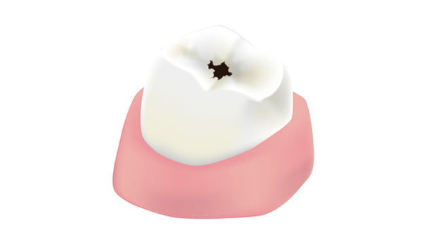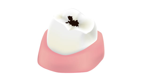 歯のエナメル質に穴が開いた状態です。そこから内部にむし歯が発生するため、治療が必要です。しかし、まだ痛みはありません。