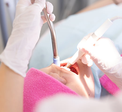 歯の根の先までむし歯が進行している状態です。神経は死んでしまったので、それまでの痛みは和らいでいます。歯肉に膿がたまることがあるため、抜歯を行います。